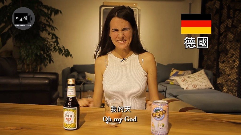 ▼一名德國女生面目猙獰地說不好喝。