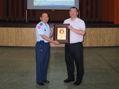 ▲劉全旭贈樹德科技大學諮商與生涯發展中心郭洪國維主任紀念品。(圖/翻攝軍聞社資料畫面)