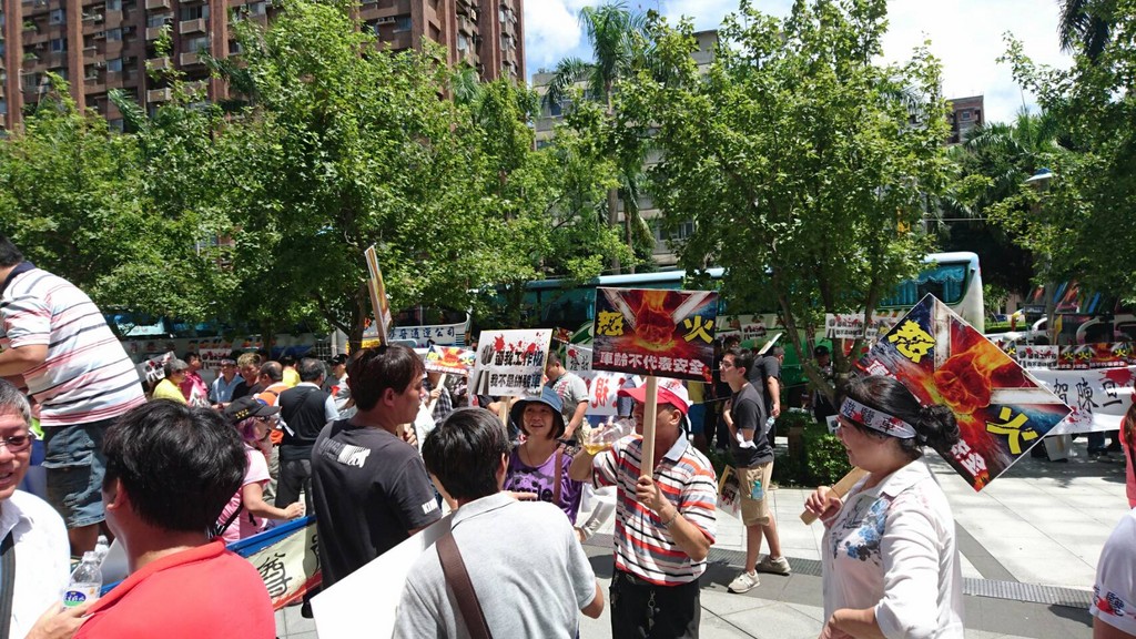 今天上午約有數十輛遊覽車包圍交通部外圍,不滿民眾舉著「還我工作權,我不是拼裝車」等標語,抗議外界汙名化遊覽車。工會表示,火燒車案引發安全門相關問題,車輛取得時是經核可的,驗車也沒問題,怎能因為單一事件就將過失算在遊覽車身上。
