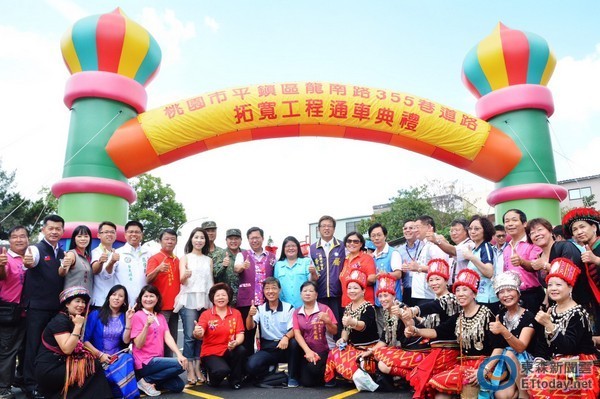 桃園市平鎮區「龍南路355巷道路拓寬工程完工通車剪綵典禮」,8日舉行。