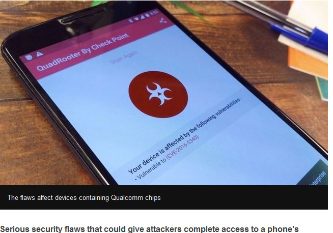 《BBC》報導,Checkpoint公司研究人員揭露,由高通公司生產,應用在晶片組上的軟體存在資安疑慮,讓有心人士能夠利用這個漏洞,漸漸取得手機控制權限,盜取手機內部資料。