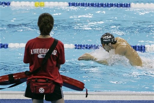根據《紐約時報》報導,得過18面金牌的美國「飛魚」菲爾普斯(Michael Phelps)在里約奧運的泳池練習時,場邊除了教練以外,還有兩名身穿紅色運動服,戴著口哨,手持浮板的救生員。
