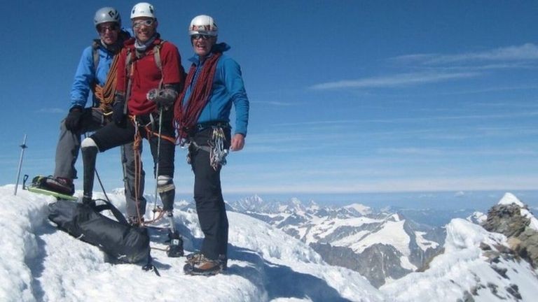 ▲失去四肢的安德鲁(中)在兩名嚮導陪同下,成功征服馬特洪峰。(圖/翻攝自網路)