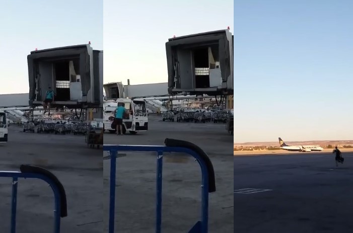 根據影片,男子接著在停機坪狂奔,想要搭上歐洲最大廉航、愛爾蘭瑞安航空(Ryanair)的波音737(Boeing 737)班機,隨後跑向兩名地勤人員,比手畫腳尋求協助。當時班機已在跑道,準備起飛。
