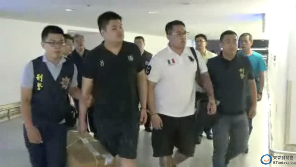 ▲刑事昨天押解2名主嫌回台,入境後出示拘票將2名主嫌移送地檢署偵辦。(圖/記者柳名耕翻攝)