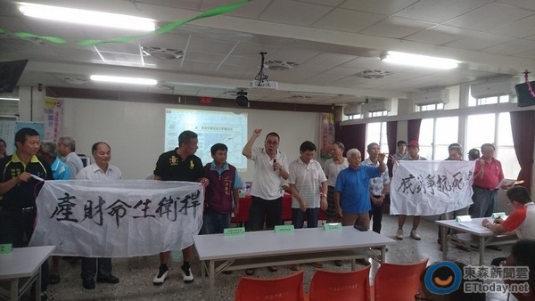 桃園市觀音區民眾11日高舉誓死抗爭的白布條,堅決反對台塑石化公司擴建儲油槽,直言一旦油槽爆炸將危害他們生命財產安全,台塑人員表示,將作好公安和環保並尊重地方民意作適時的回饋。