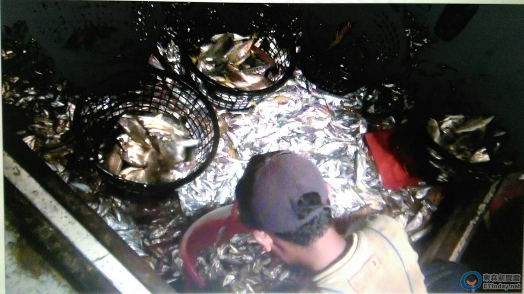 ▲台南海巡隊登船檢查,發現漁獲大部分均為小雜魚,嚴重破壞海洋生態。(圖/記者林悅翻攝)