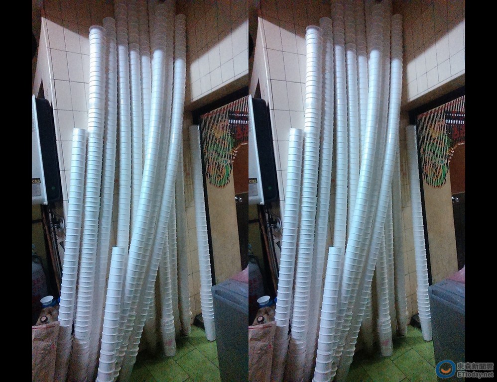 ▲飲料杯層層疊直頂天花板。(圖/網友提供,請勿隨意取用,以免侵權。)