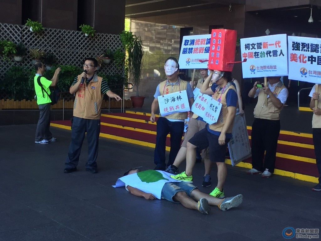 ▲台聯赴台北市府抗議柯文哲將與沙海林會晤。(圖/記者張暐珩攝,下同)