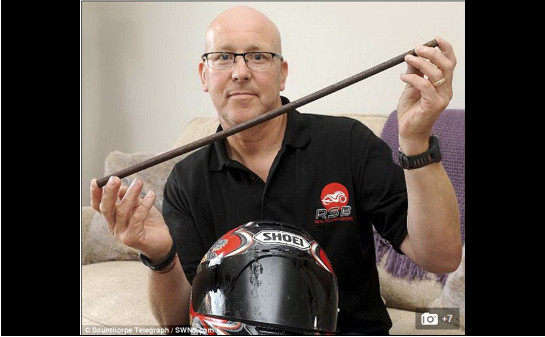 英國英格蘭東部的林肯郡(Lincolnshire)55歲男子布萊德蕭(Paul Bradshaw)騎機車意外摔進水溝,被一條長120公分的鐵桿刺穿脖子,事後不但奇蹟的生還,而且還在兩天內就康復出院。醫生表示,只差幾公釐就可能癱瘓或因大量流血而致命,他也覺得覺得相當不可思議。