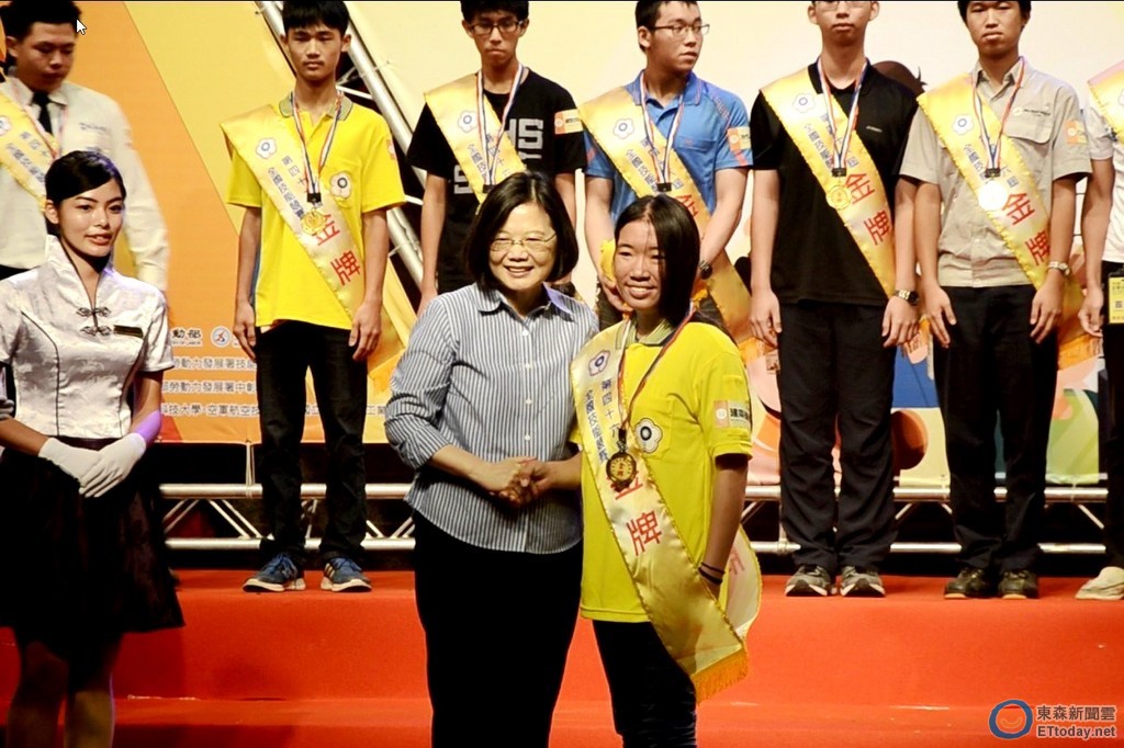 ▲總統蔡英文頒發獎牌,給建築舖面金牌得主趙若晴。(圖/勞動部雲嘉南分署提供)