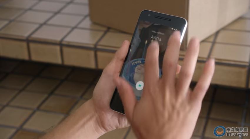 這裡有個很特殊的功能,叫做「敲一敲」(Knock Knock),這個動作有點像是有鄰居拜訪時所做的敲門動作,在 Duo 介面當中,對著聯絡人敲一敲,可以看到一個預覽正在打電話給你的人,接著就像 Facetime 一樣,Duo 可以進行免費網路通話,也支援一對一視訊。