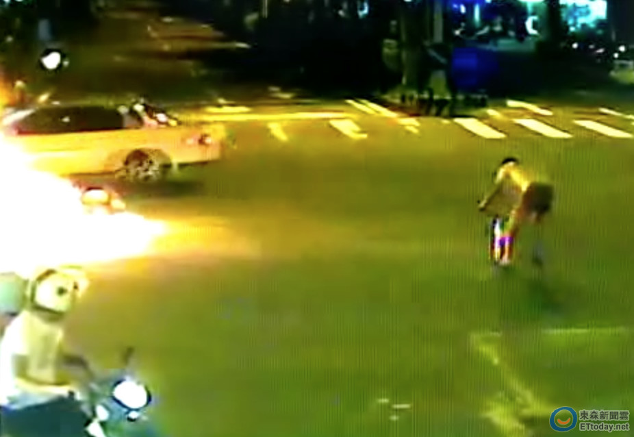 昨天晚間9點,在台北市松山區民權東路、撫遠街口發生機車擦撞事故,1台機車疑似闖紅燈擦撞綠燈起步的騎士,2台機車擦撞倒地後,疑似油箱漏油起火燃燒,所幸騎士趕緊跳開僅受皮肉傷。