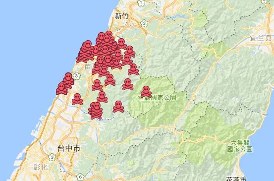 苗栗縣議員陳光軒日前向苗栗縣消防局調閱資料計表,也公布便民內容,並花了2週的時間,將縣內曾經發生事故的水域標籤至「Google地圖」,並用紅色骷髏頭圖案標示,且詳細記述了地點、事故原因等資訊。不過,由於事故地點密集的超乎想像,讓網友直呼:「感覺好像苗栗縣是亂葬崗,夠嚇人的!」