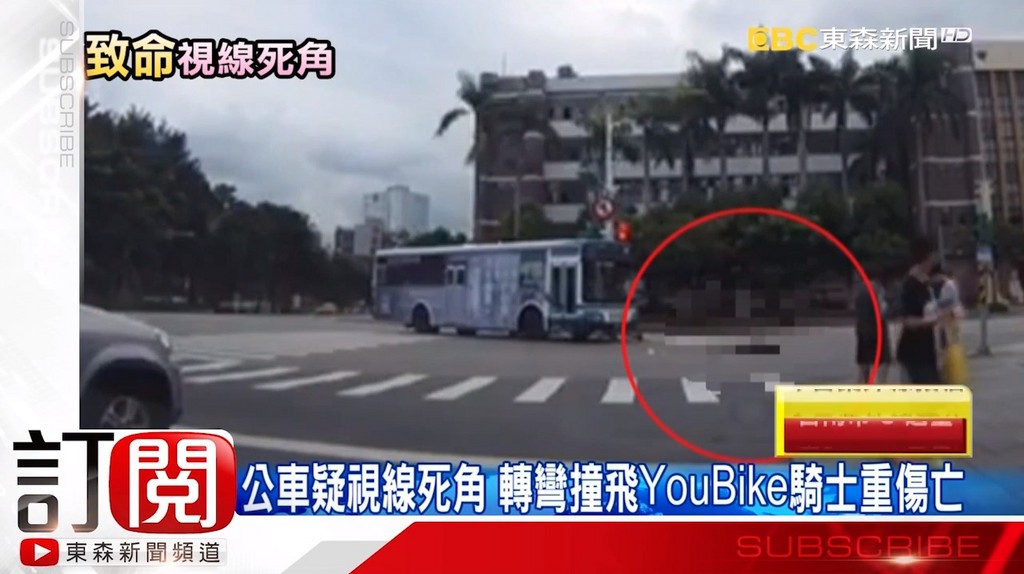 新店客運一輛648路線公車17日下午行經台北市區,左轉時疑因視線死角加上車速過快,撞飛騎在斑馬線上的YouBike程姓騎士,導致對方彈飛倒地、頭部重創,送醫後傷重不治。