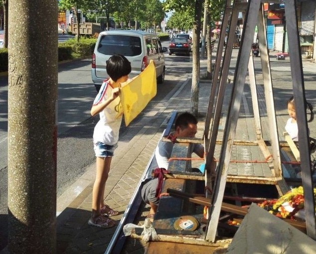 這溫馨的一幕發生在浙江嘉興城南路的人行道,拍攝者許宏林是嘉興市中級人民法院的一名司法警察。他接受《錢江晚報》訪問時說,14日星期天上午他要去買菜的路上,剛好看到女孩為修車男人擋太陽的一幕。「我當時覺得這是一對父女,畫面很暖心,就隨手拍了下來。」