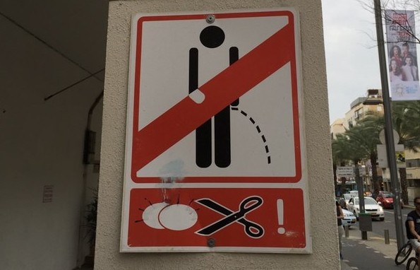▲許多地區都明文禁止隨地小便,圖為以色列告示牌。(圖/翻攝自網路)