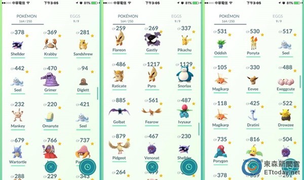記者在七星潭待了2小時左右,捕獲平常很少見的菊石獸、3D龍、卡咪龜、椰蛋樹、迷唇姊、凱西、催眠膜、卡蒂狗、喵喵、大蛇貝、派拉斯特,另外有大舌頭、頑皮彈跟隆隆石跑走了。原本出發前背包裡只有63種寶可夢,一趟旅程下來,包含進化所取得的巴大湖已達89種,250格的寶可夢背包爆滿,差點抓不到3D龍。