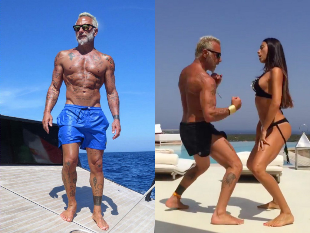 49歲的Gianluca Vacchi即便頭髮、鬍子都已經全白,但仍保持好體態,8月3日放出影片,他戴著粉紅色墨鏡、穿著藍色小短褲,流暢地抖胸、擺手、轉圈,跳起來遊刃有餘,一點都不喘。除了舞技,網友也注意到他結實的胸肌、腹肌、人魚線,留言「那個身材!!!」留下深刻印象。