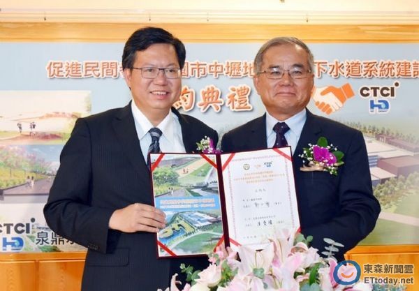 工程延宕7年、建設總經費高達621億元的「中壢地區污水下水道系統建設BOT案」,19日於市府由市長鄭文燦和「泉鼎水務公司」董事長潘寶耀進行簽約。鄭市長指出,該工程是國內近年來,最大的下水道系統投資案,也是台灣推動BOT的關鍵案件,對桃園的城市基礎建設非常重要。