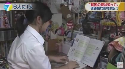 《NHK》的報導指出,日本每6名高中生就有1名是貧窮學生,甚至有許多單親家庭的孩子因為經濟原因沒辦法入學,失去接受高等教育的機會。節目也專訪一名橫濱明朋高校的高三女學生杉山麗(うららさんは),杉山麗表示,自己小學5年級的時候父母就已經離婚,由於只有母親的一份薪水,家裡生活條件非常貧乏,在買不起電腦主機的情況下,她只能單買一個1000元日幣(約316元新台幣)的鍵盤來練習打字。