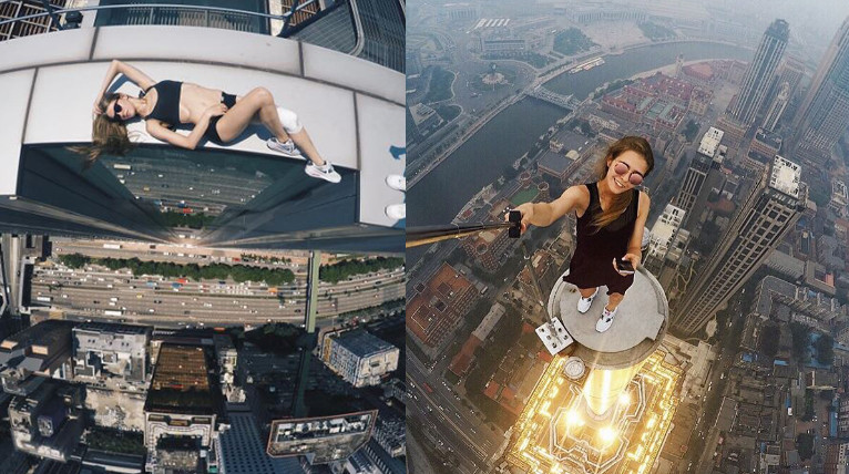 俄國一位23歲的金髮美女Angela,相當愛挑戰極限,她時常在她的Instagram上分享高樓自拍的照片,她帶著微笑,爬上高樓頂端,還坐在高空吊車上自拍,甚至做出高難度的後手翻動作,讓她在網路上爆紅,她說自己確實很愛挑戰極限,不只是走在屋頂邊緣,重點是突破的過程挑戰安全。