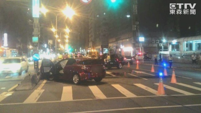 廖姓女子20日深夜在台北市北安路一家喝完酒後開車返家,行經林森南路、忠孝東路口時,先擦撞公車,再撞Jaguar轎車、BMW休旅車,後者還遭撞翻360度,所幸車上人員都沒有受傷。