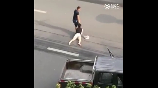 大陸《啟迪時報》的微博20日貼出這則影片,畫面中男子緊緊抓著女子的頭髮,在人來人往的大馬路上狠狠拖行,女子趴在地上不斷哀嚎,驚恐的大聲呼救,但路過的許多駕駛卻沒有任何人停車關心,附近商家也只站在一旁圍觀,沒有人伸出援手;路旁有一名保全走近試圖勸戒,但該名男子不予理會仍繼續拖行女子,保全便轉身離開。