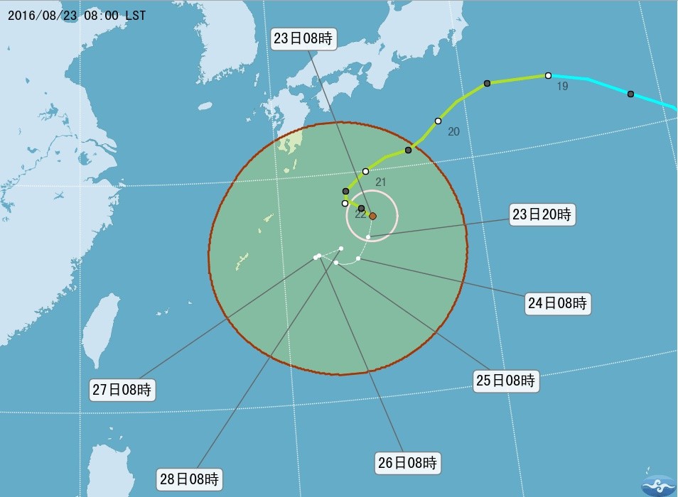 氣象局表示,下周日(28日)、下周一(29日)颱風逐漸遠離琉球海域,水氣開始減少,北台灣降雨狀況緩和,各地逐漸恢復整天大致晴朗,午後局部雷雨的天氣型態,未來幾天西北太平洋仍處於大低壓帶中,仍不排除有新的颱風形成。