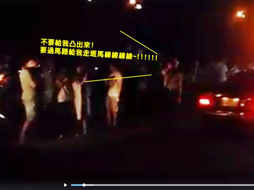 女警為了維持道路暢通不被抓寶民眾佔路,拿著大聲公,戴著安全帽,拚命狂喊「行人給我全部走在人行道,不要給我凸出來」、「行人走在人行道,不要給我凸出來,要過馬路給我走斑馬線!!!!」、「前面走在路上的!給我走在人行道沒聽懂嗎!」、「行人走在人行道、不要給我用跑的!」喊到都快燒聲,就是為了管制過量人潮。