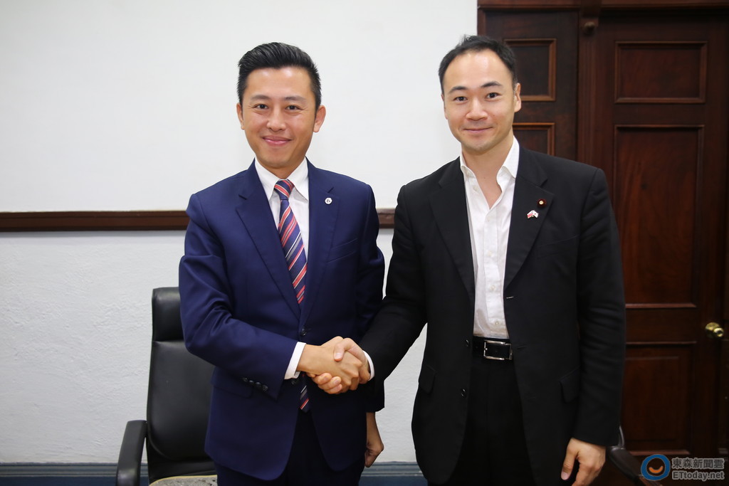 ▲新竹市長林智堅(左)和日本自民黨青年局局長鈴木馨祐率合照。(圖/新竹市政府提供,下同)
