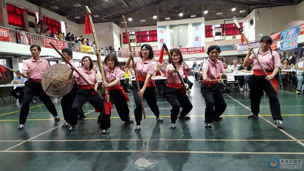 ▲五甲龍凰寺宋江陣不僅是六甲地區唯一有女性參與的宋江陣,六甲里守望相助隊分隊長也是女性。(圖/警方提供)