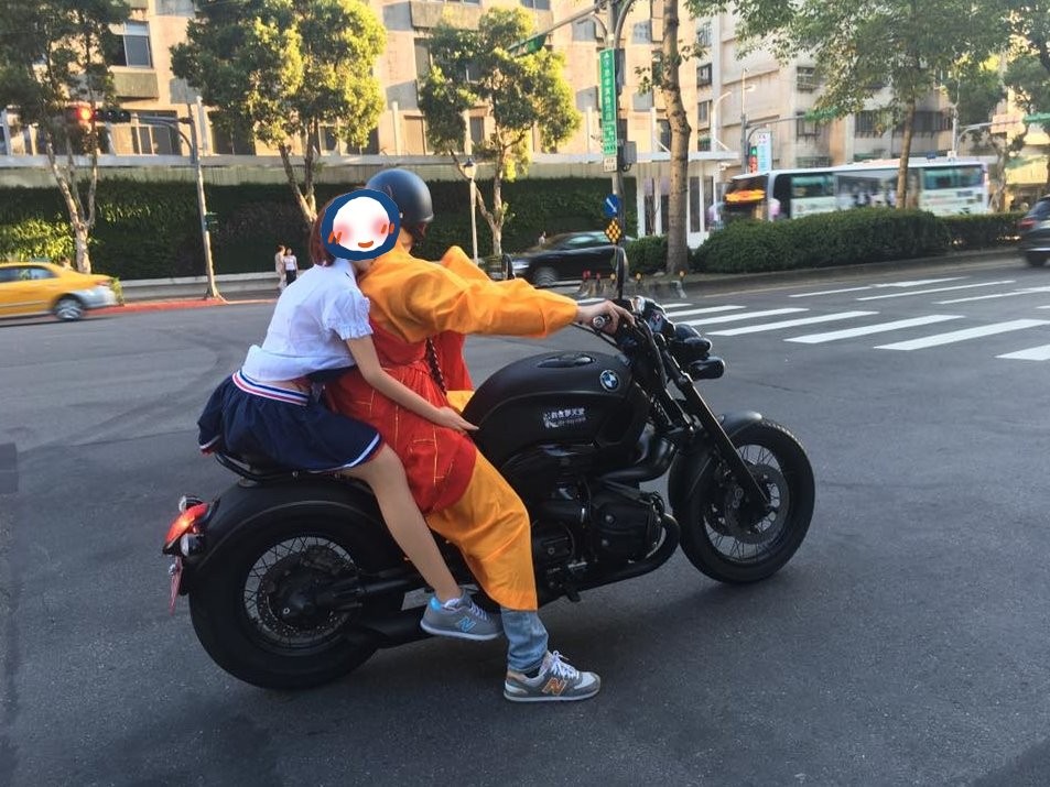 這是哪一招?一位網友po文表示,在台北市忠孝東路三段253號路口,看到一位穿著類似袈裟的騎士,騎乘BMW重機在路上,後座還載著一位沒戴安全帽的女孩。仔細一看,照片中這位穿著類似日本高校制服短裙女生,原來是他的「特殊伴侶」,網友看了也忍不住笑說「載女友出來兜風嗎?」