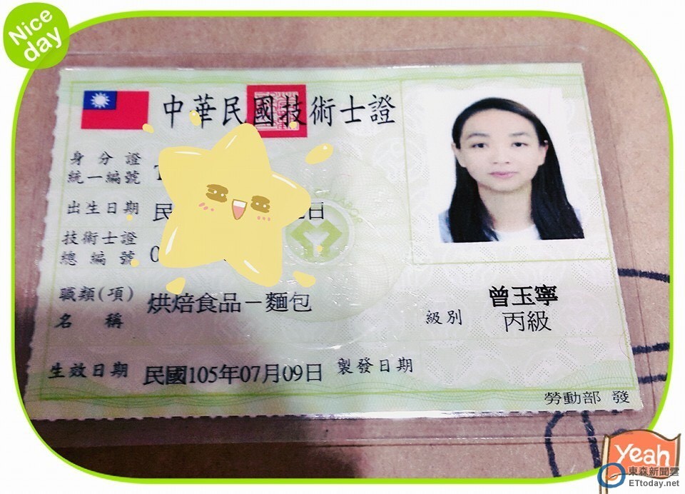▲淡水分局偵查隊警花曾玉寧除辦案一把罩外,還有一雙巧手在上月取得丙級烘焙技術士證照,被同事稱為「刑警食神」。(圖/記者孫曜樟翻攝)