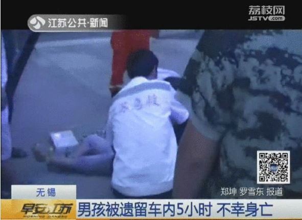 台灣先前有爸媽不小心將女嬰關在車內,報警開窗,而大陸無錫的10歲男童就沒這麼幸運了,一位爸爸帶著自己的兒子到公司上班,將車停在辦公大樓前,不過他下車時忘記自己的兒子還在後座,就直接將車子上鎖,直到傍晚六點,父親要去開車時,才發現兒子已經嘴唇發紫,窒息身亡,雖緊急報警,但已來不及搶救。