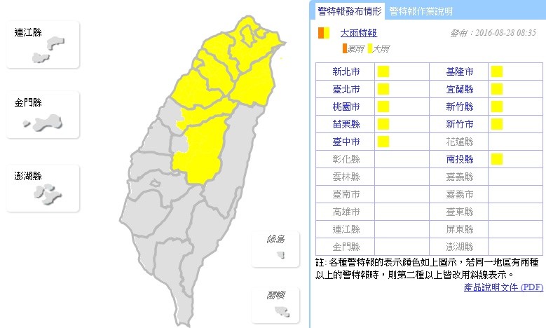 由於對流雲系發展旺盛,部分地區易有短時強降雨,氣象局今天上午也針對10縣市發布大雨特報,其警戒範圍包括新北市、基隆市、台北市、宜蘭縣、桃園市、新竹縣、苗栗縣、新竹市、台中市、南投縣,今天苗栗以北、宜蘭地區及台中、南投山區有局部大雨發生的機率。