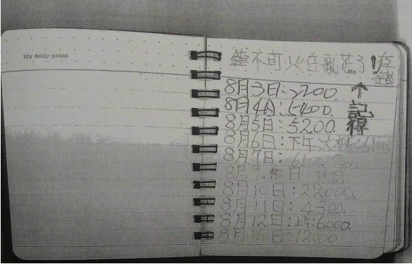 ▲陳嫌將自己的偷竊的時間、金額詳細寫在筆記本上。(圖/翻攝畫面,下同)
