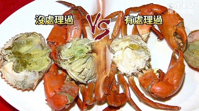 裹粉下鍋,螃蟹大火油炸,切半剝開,用黑胡椒悶的處女蟳,蟹膏快要滿出來,台灣人愛吃海鮮,螃蟹、鮑魚、扇貝滿滿一桌,饕客雙手並用品嘗美味。螃蟹一離開水族箱活跳跳,在烹煮之前,師傅得先仔細處理,因為有些部位可不能吃。