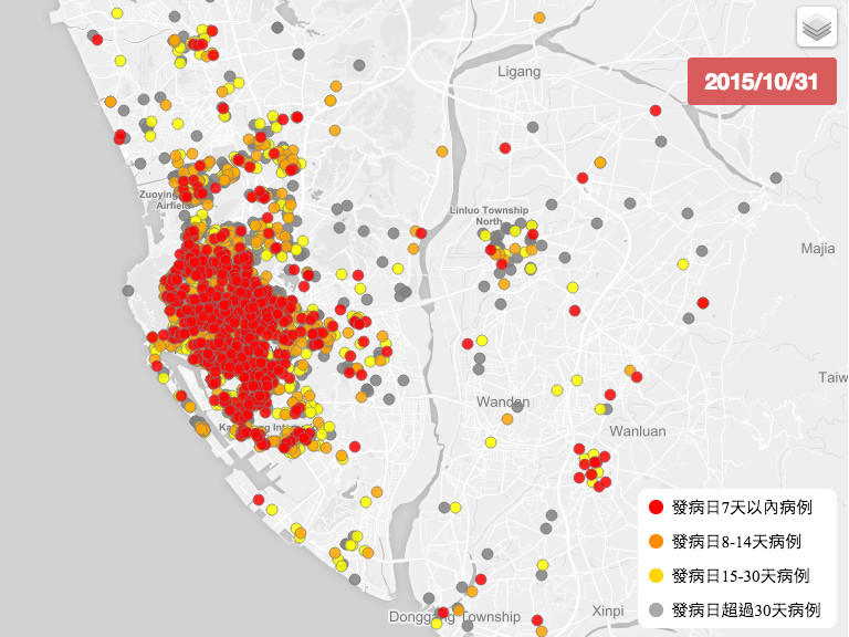 ▲2015年南台灣爆發登革熱疫情。(圖/截取自衛生福利部疾病管制署)
