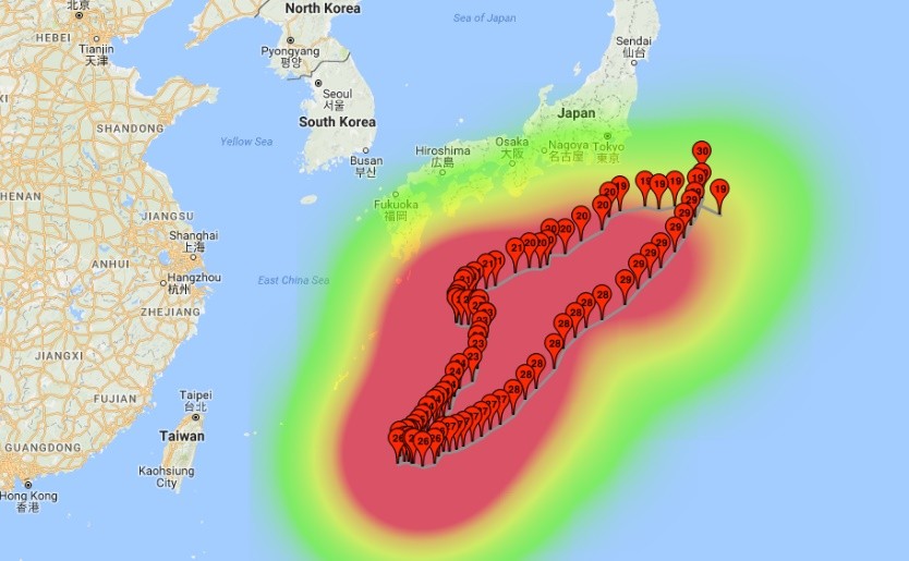 ▲獅子山颱風今天下午將會登陸日本。(圖/中央氣象局)