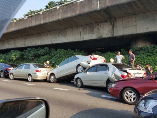 ▲中山高連環車禍,5輛車都是豐田品牌,引發網友熱議。(圖/經網友Mono Wang同意使用,下同)