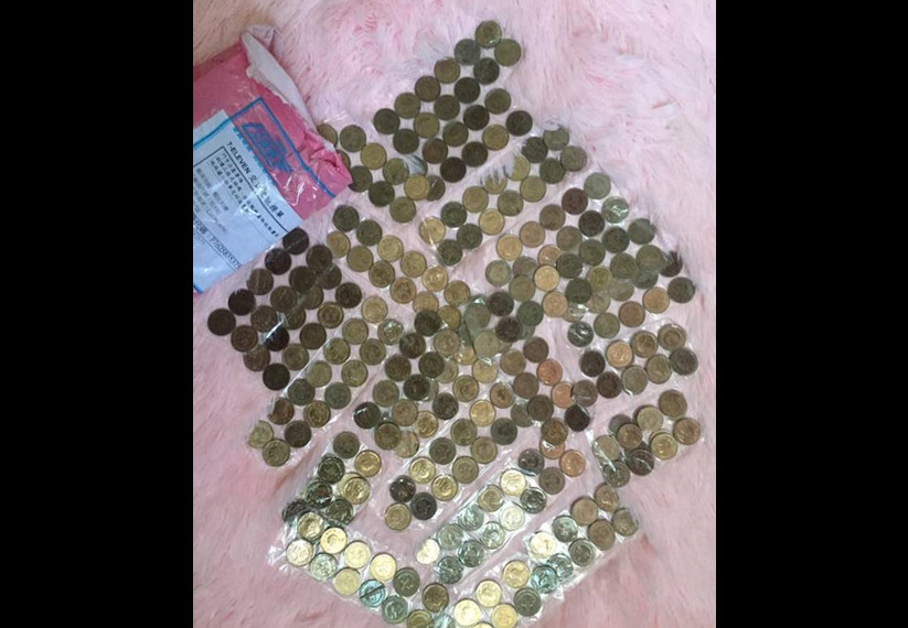 ▲退貨奧客把268元全換成1元硬幣。(圖/翻攝自爆料公社)