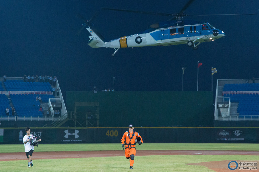 據了解,今日開球嘉賓、空軍救護隊上士救護士高振耀為賽德克族人,曾參與多次重大救援任務,也是一位壘球高手,今日則依計畫由S-70C垂降並執行開球任務,而打擊則為Lamigo桃猿陳金鋒。
