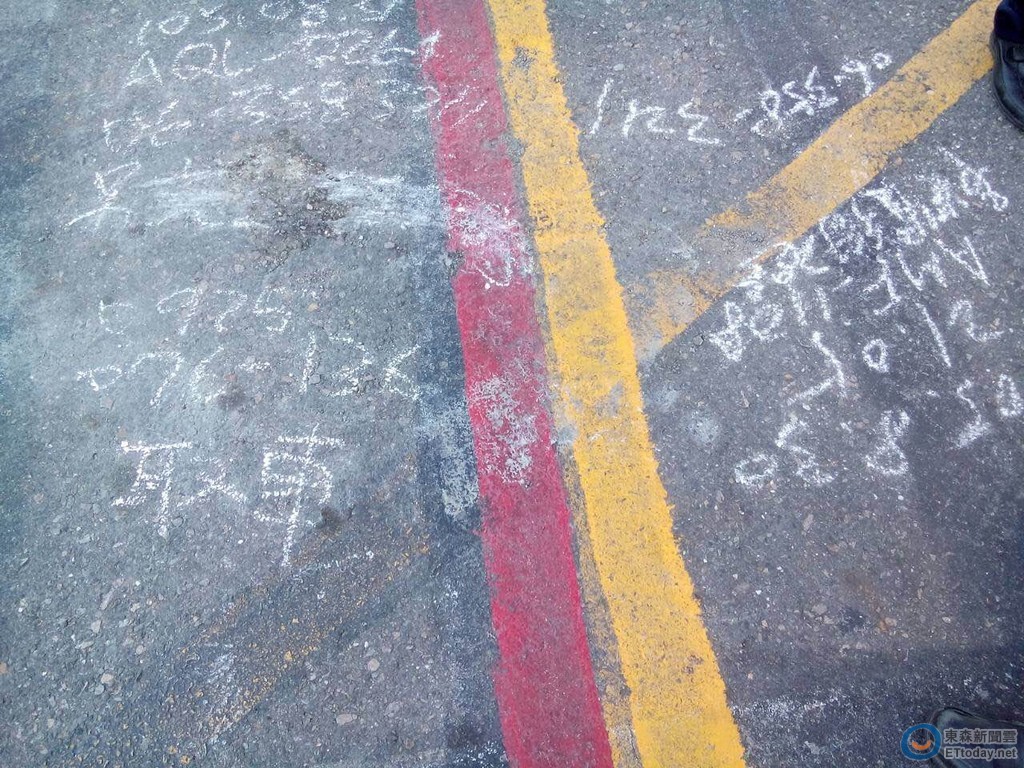 ▲有不肖歹徒利用拖吊車拖吊違規停車後,將留在地面上的拖吊場名稱、住址及電話的粉筆字均塗銷,然後再寫上自已的行動電話號碼,意圖以擄車勒贖的方式向被害人詐騙錢財。(圖/警方提供)