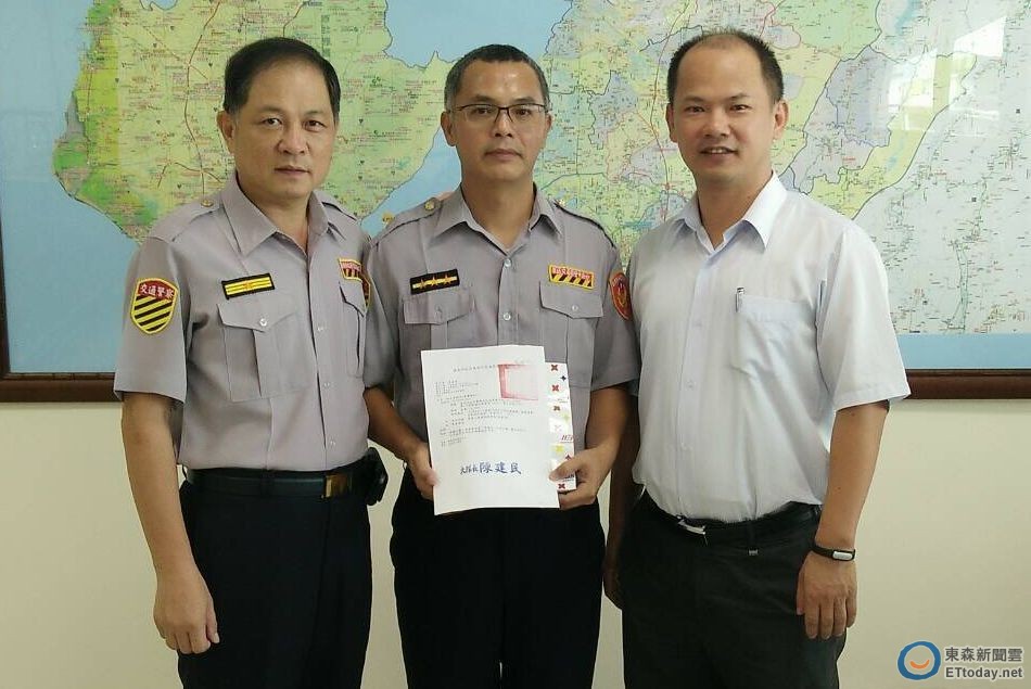 ▲交通警察大隊大隊長陳建民(左),表揚為民服務績優員警。(圖/警方提供)