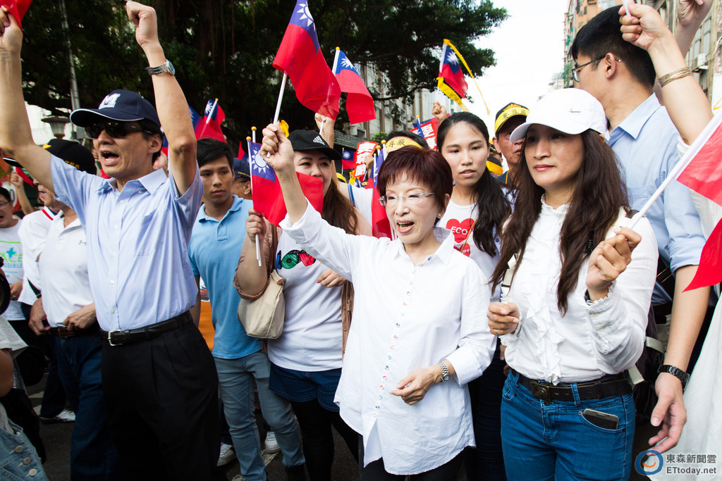 ▲洪秀柱率國民黨4位副主席一同參與遊行,受到大批民眾簇擁。(圖/記者季相儒攝,下同。)