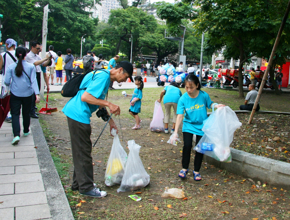 眼看志工們三兩成群,還有家長帶著年幼兒女一同來參與志工行列,在北投公園以及周遭店家來回穿梭,一小時後,每組都帶了滿滿一袋,還將撿拾回來的垃圾做分類,志工身影中有一位80歲的陳奶奶,體力不輸年輕人,她笑著說:「我也會在這裡(北投公園)抓寶唷,大家因為遊戲聚在一起也很有趣,但是垃圾也要隨身帶走唷!」