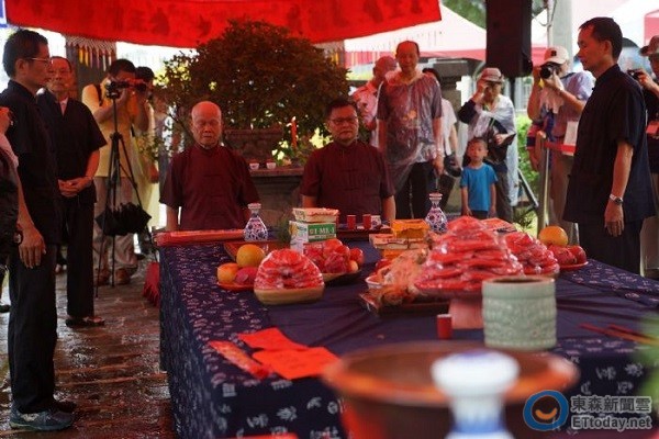 「2016桃園龍潭送聖蹟」祭典3日舉行,由老中青三代重現昔日客家鄉親收集字紙至聖蹟亭焚化後,以客家三獻禮恭請河神將字紙灰燼送入大海的儀式,象徵漢字文化傳諸四方並展現客家人「敬字惜紙」的精神。
