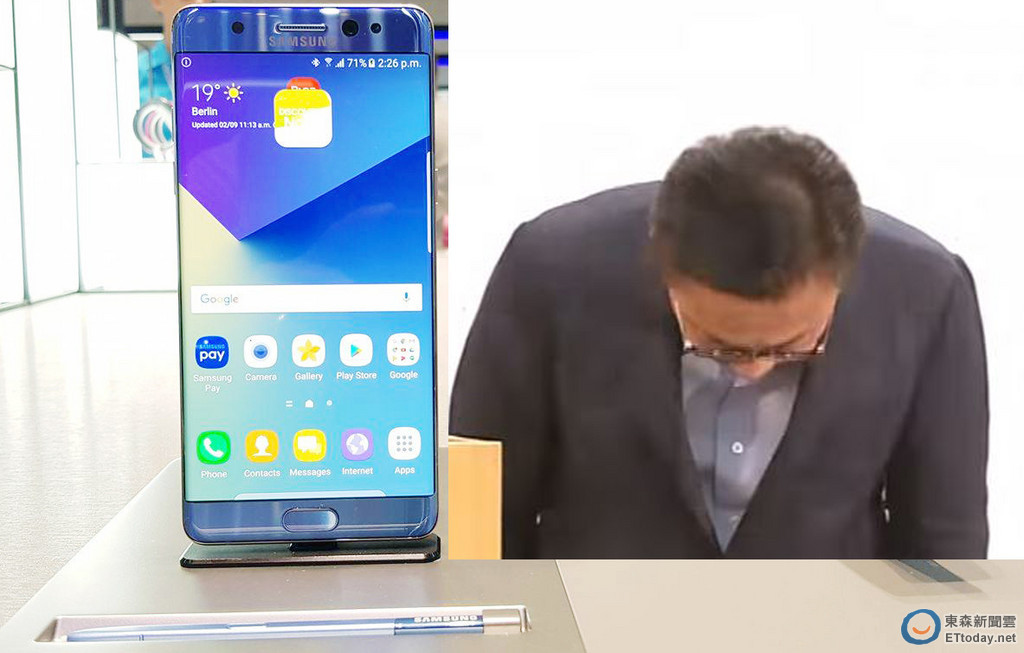 這個動作對比 2010 年蘋果 iPhone 4 天線門,可是各國媒體炒了一輪又一輪,大約隔了三週才有相關回應,當年的執行長賈伯斯在 15 分鐘的記者會中,沒有一句道歉、更沒有人看到他彎腰,甚至向媒體說:「你們握的方式不對」,事後沒有全面召回,最多只接受退貨,然而到了台灣市場,當時的消費者客訴不斷,一直到 2011 年 10 月 4 日 iPhone 4s 發表之後,才間接承認 iPhone 4 的天線問題;對比,三星負責人高東真第一時間鞠躬道歉,然後全球上市國家開始宣布並著手召回計畫,兩者態度與反應天差地遠。