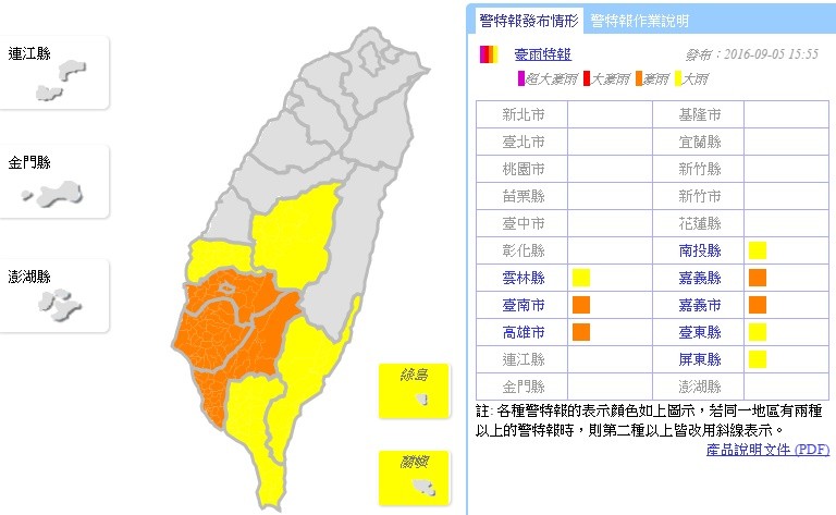 由於台灣位於低壓帶中,各地天氣不穩定,今天水氣範圍主要集中在中部以南地區。中央氣象局下午持續針對中南部地區8縣市發布天氣警特報,其中嘉義縣、嘉義市、台南市、高雄市升級豪雨特報,外出請注意雷擊、強陣風,用路行車注意交通安全,山區請慎防坍方、落石及溪水暴漲。